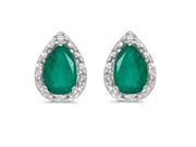 14K White Gold Pear Emerald and Diamond Earrings